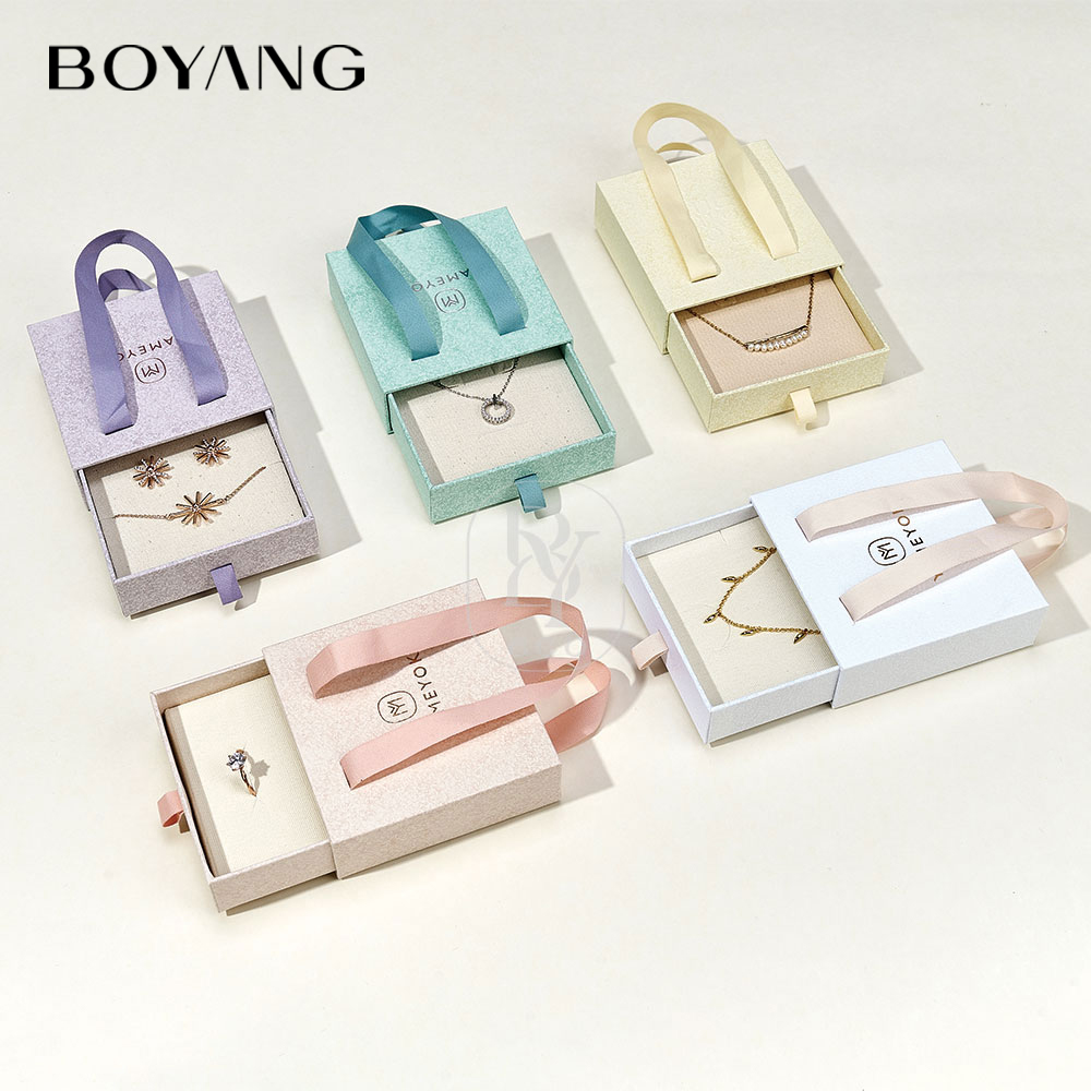 Boyang Пользовательский логотип ящик скользящая картонная бумага роскошный подарок коробка для ювелирных изделий